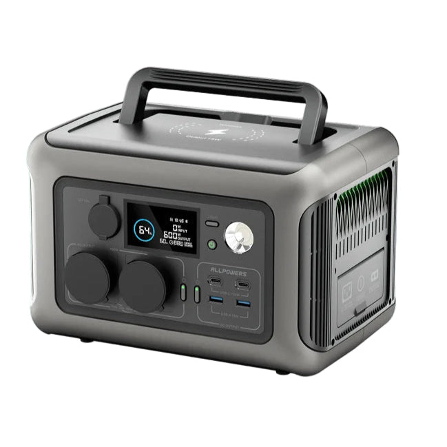 The Global Power Station by ALLPOWERS is a versatile energy solution featuring dual AC outputs delivering 600W continuous power and 1200W peak capacity for reliable operation of various devices. Its 299Wh LiFePO4 battery offers long-lasting and safe energy storage, supported by advanced MPPT solar input (12-60V, 12A) for efficient recharging. This compact unit (28 x 19 x 19 cm) includes multiple output options: USB ports delivering up to 36W, USB-C ports supporting up to 200W for fast charging, and a 15W wireless charger, making it ideal for on-the-go power needs. Certified by CE, PSE, FCC, RoHS, WEEE, and UL, it ensures compliance with global safety standards. Additional features such as a clear display screen and 12V/24V car charger input enhance usability, positioning this power station as a dependable choice for outdoor enthusiasts and professionals requiring clean, portable, and versatile energy.